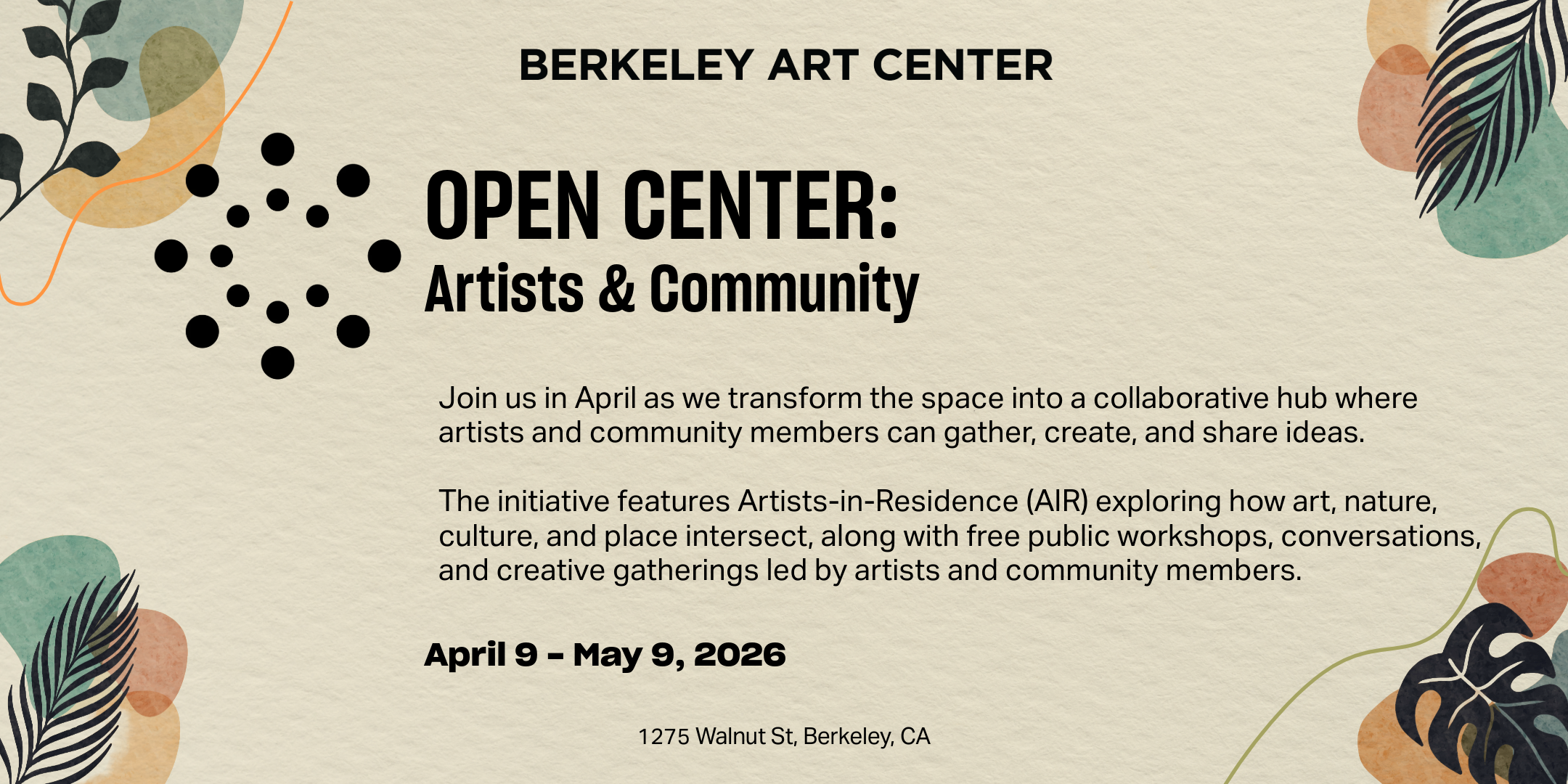 OPEN CENTER: Regeneration & Renewal 2026 | Public Art Reception: April 11, 2026 | 4:30 – 6:30 pm.